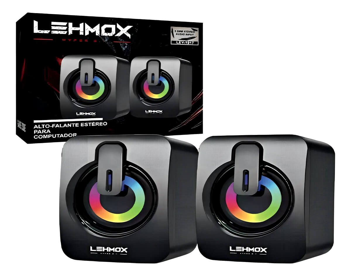 A Caixa de Som Lehmox LEY-1917 é uma caixinha de som para computador ou notebook usada para ouvir músicas, vídeos, jogos e outros áudios com mais qualidade. 🎧🔊