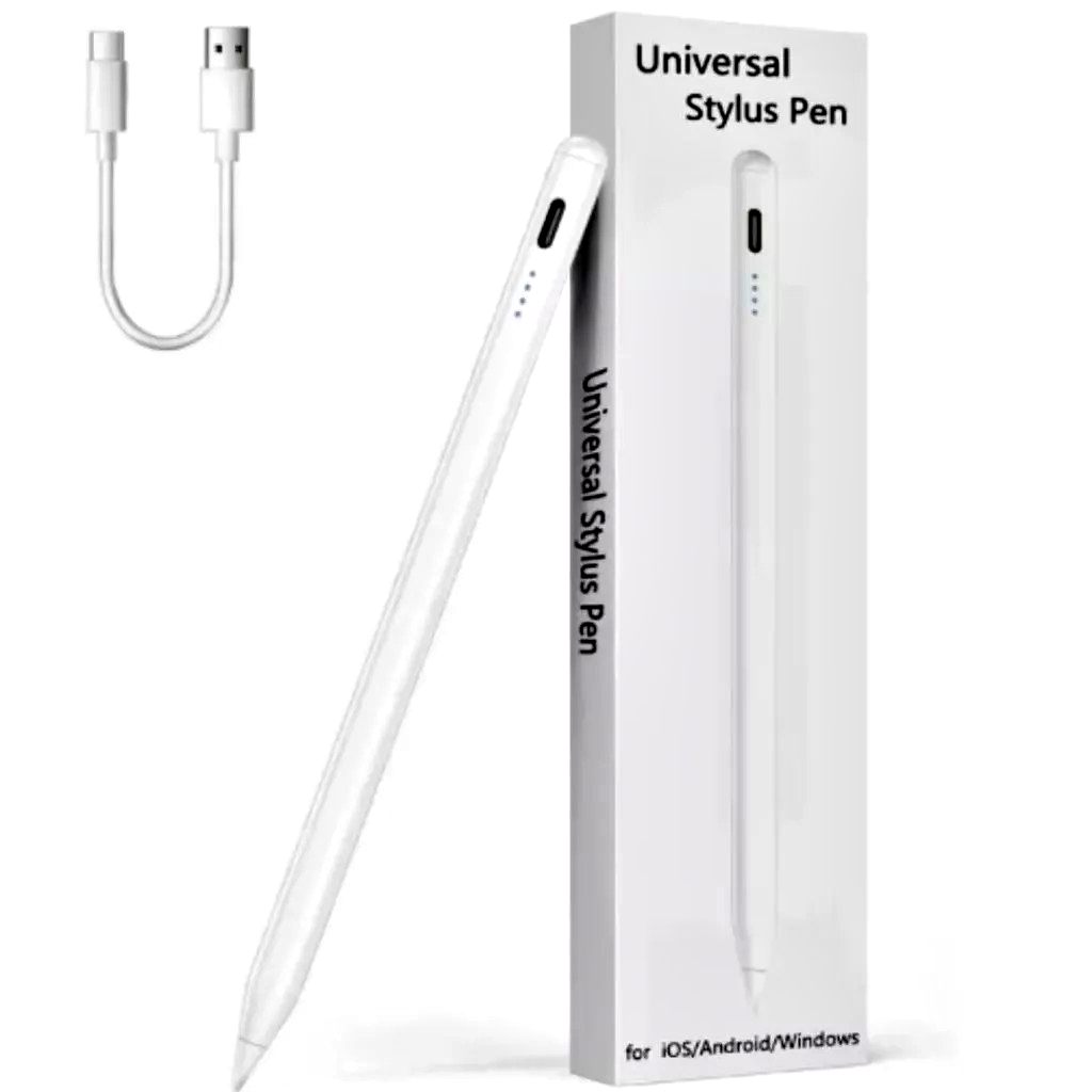 A caneta touch stylus universal é uma caneta feita para usar em telas sensíveis ao toque, como celulares, tablets, iPads e notebooks com tela touch. Ela funciona como se fosse o seu dedo tocando na tela, mas com mais precisão para escrever, desenhar ou navegar.