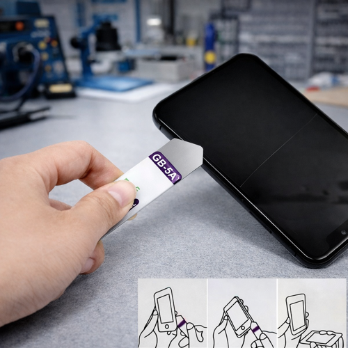 A Espátula Flexível GB-5A é uma ferramenta profissional usada na assistência técnica de celulares e notebooks para abrir aparelhos colados e descolar componentes com segurança.